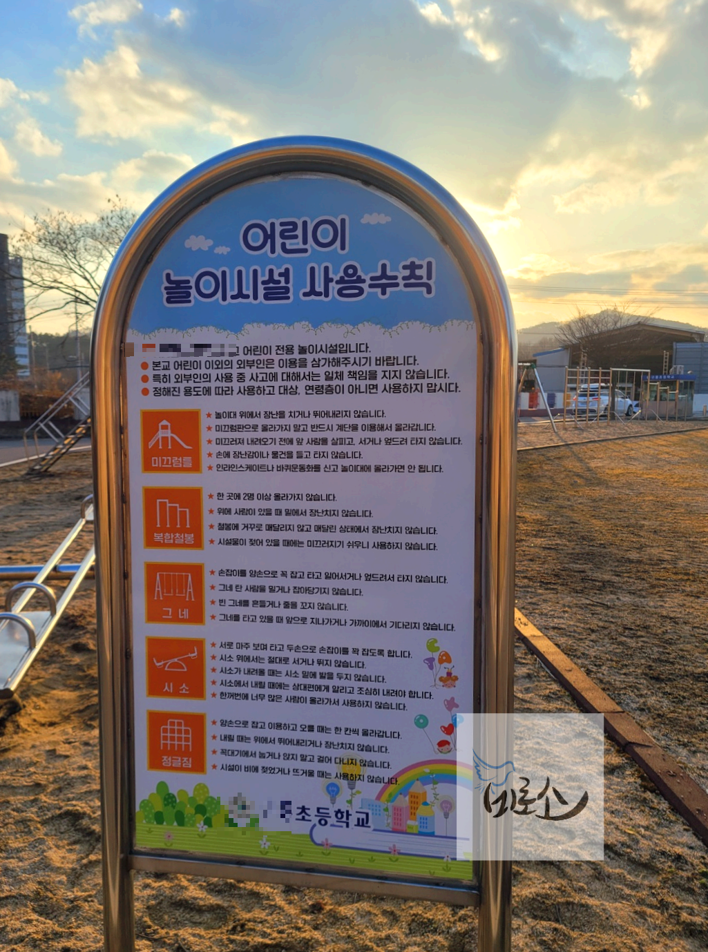 운동장 둘레를 돌면서 노을이 지는 것을 보니 기분이 차분해지면서 예전 생각이 들었다. 한편으로는 지금 이 곳을 다니는 초등학생들의 일상을 상상하기도 하였다. 곧 개학을 하면 이 곳 정문을 통해 왁자지껄 삼삼오오 교실로 향하겠지. 담임 선생님, 교감 선생님께 인사를 하고 놀이터를 그냥 지나치지 못하고 한번씩 타보고 들어가는 녀석들도 있겠지 하고 말이다.