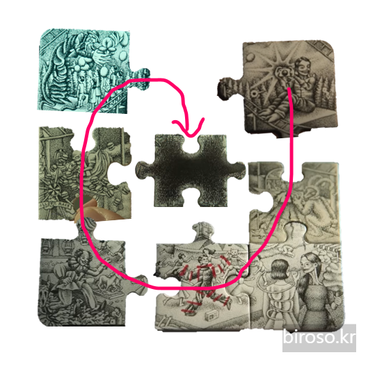 지금까지 밝혀진 퍼즐은 9개 조각으로 시계방향으로 사건이 발생되었다.