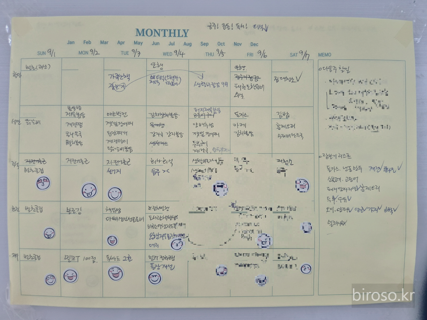 [비로소 행복지도/비로소 좋은 습관] - 다이소 월간 계획표로 가족 주간 식단 및 일정표 작성하여 냉장고 붙이고 활용하기