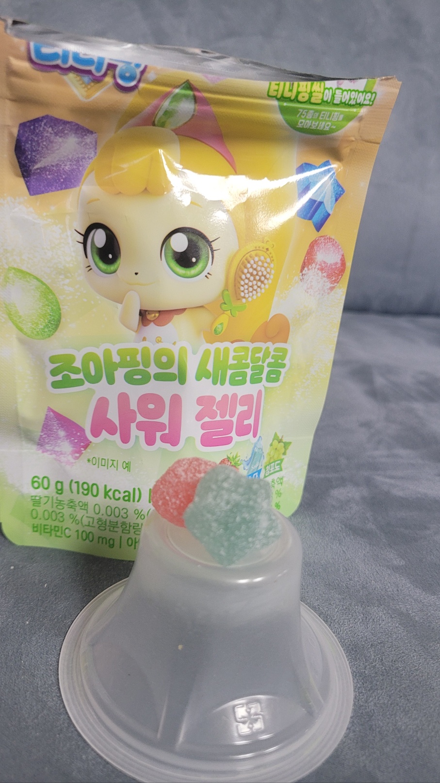 아이 옆에서 한두개씩 맛본 결과 기존 다른 젤리와 비교할 때 상대적으로 크기가 좀 큰 편이고 띠부실때문에 구매한다 쳐도 그 맛이 나쁘지 않다는 의견이다. 여자 아이들의 절대적인 지지를 받는만큼 인기 많은 캐릭터를 내세우고 이미지가 연결되는 특성을 가진 젤리를 개발하여 판매하는 기획이 좋았다. 단지 그 인기 때문에 웃돈까지 주고 기어코 4종 풀세트를 맛보고야 말도록한 상술도 인정한다. 같은 젤리를 포장만 바꾸는 게 아니라서 이렇게 완전체를 모아보려는 심리가 인터넷에서 웃돈주고라도 사야겠다는 생각을 하게 되는 것 같다.