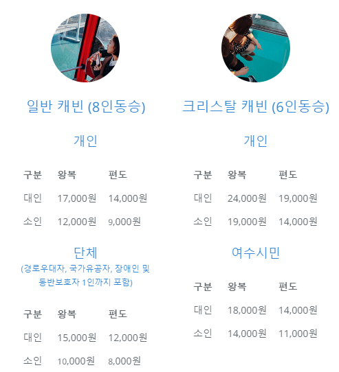케이블카 가격은 시간대비 다소 부담스러울 수도 있지만 사람이 붐비지 않을 경우에는 동행 가족끼리 독립적으로 캐빈을 탑승시켜 주기도 해서 여행에서 좋은 추억을 만들 수 있으니 투자할만하다. 캐빈은 일반 캐빈과 크리스탈 캐빈이 있는데 크리스탈 캐빈은 발 아래 쪽이 훤히 보인다는 특징이 있다. 다만 밤에 이용할 경우에는 크리스탈 캐빈의 효용이 극적이지는 않는다는 리뷰가 있다. 어른의 경우 편도 14000원, 왕복 17000원이고 36개월까지 아이는 무료로 탑승이 가능하다. 소인은 편도 9000원, 왕복 12000원이다. 크리스탈 캐빈의 경우 왕복요금이 7000원씩 비싸다.