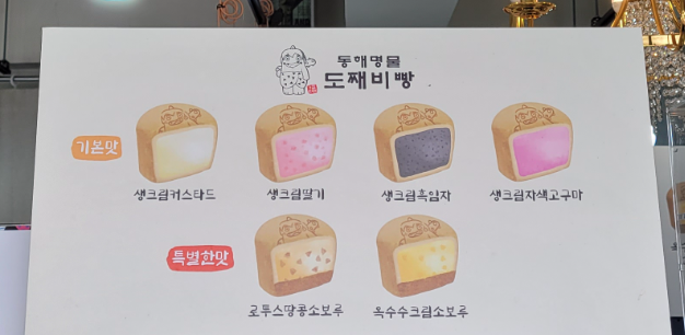 도째비는 도깨비의 방언이라고 한다. 그래서 스카이밸리 곳곳에 도깨비 조형물이 마련되어 있다. 높은 경사의 언덕을 걸어 내려가면 또 다시 만나는 동해바다 위를 거니는 다리를 만나는데 그 근방에는 로스터리 카페와 횟집이 즐비했다. 한참 둘러보다가 도째비골에 왔으니 특산품하나 먹어줘야한다는 신념이 돋았는지 도째비빵 가게가 보이길래 자동으로 발길이 향했다.