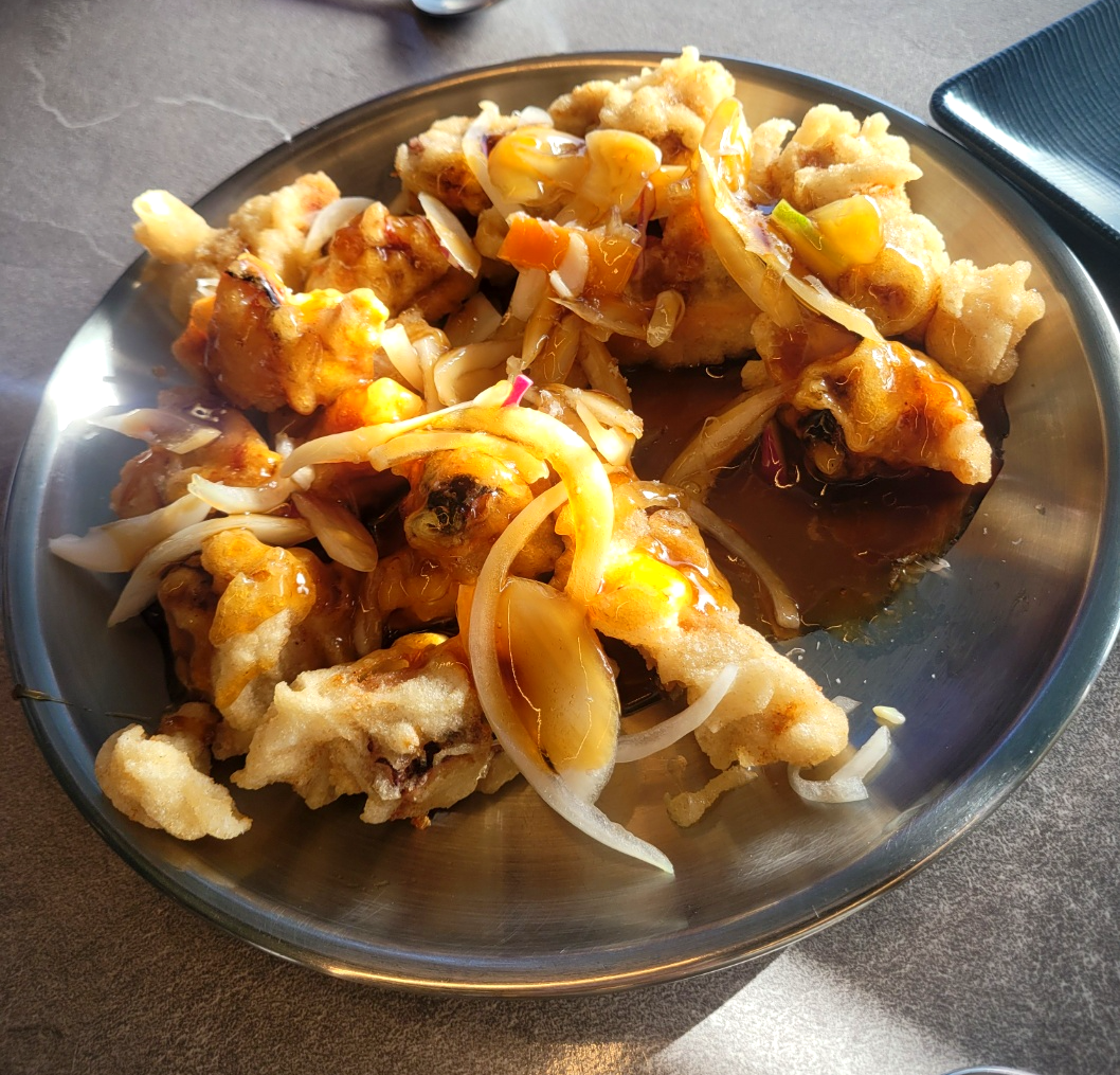 음식점 이름만큼 메인은 탕수육이다. 거동탕수육 오리지날은 국내산 돼지고기 등심에 문어가 박힌 독특한 구성이다. 오리지날은 우리가 아는 비주얼로 대중소 마련되어 있다. 가격은 18000~28000원이다. 거동탕수육은 매콤한 버전으로도 만나볼 수 있는데 약간 양념통닭 비주얼이었고 맵기정도도 닭강정정도라고 한다. 가격은 대중소로 23000~29000원이다. 여기에 문어로만 탕수육을 만든 버전도 있었지만 거기까지는 궁금한 맛은 아니었다.