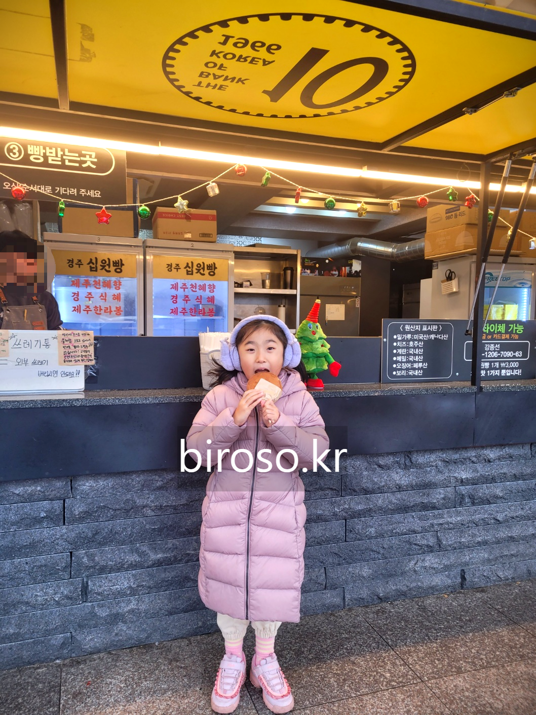 워낙 인기가 있었는데 뒷북인듯 하지만 주욱 늘어나는 치즈와 구수한 빵이 적당히 궁합이 좋았다. 비록 밀가루는 미국산이고 치즈는 호주산이지만 보리는 국내산이라고 적혀있었다. 십원빵은 십원이 아니라 3000원이었다. 호떡처럼 손으로 들고 먹는 것이 아니라 핫도그처럼 막대기에 꽂혀 있어서 롤리팝을 먹듯 주는 것이 특징이다.