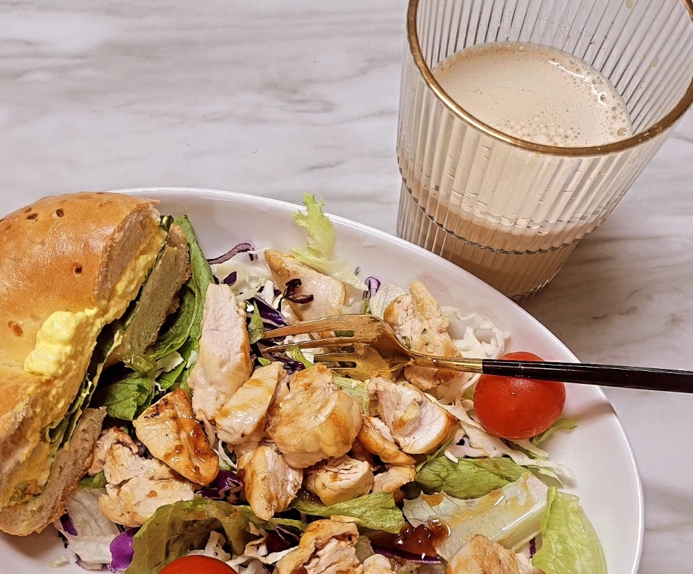 베이글은 트레이더스에서 저렴하게 구매할 수 있는데 가끔 에그마요 샐러드를 넣거나 크림치즈를 발라서 반쪽을 먹고 남은 반쪽은 냉동해 두고 다음에 먹는 식으로 곁들이는 것을 좋아했다.