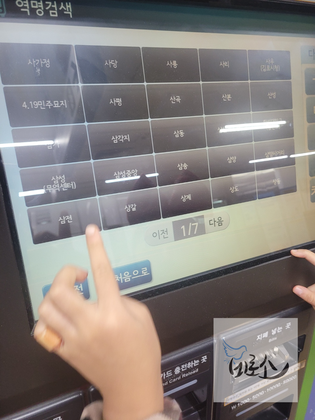 구매하는 순서는 터치 스크린에 목적지를 선택하여 가고싶은 역의 이름을 조회하여 선택하고 탑승 인원을 적용하여 현금을 넣고 발급을 받는 순서로 진행하게 된다.