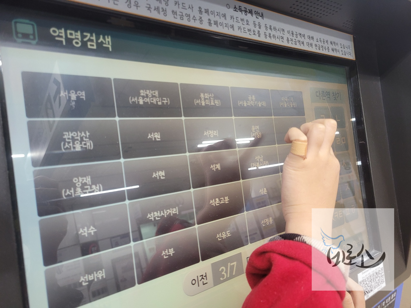 대부분 자동차를 타고 이동을 하다가 도심으로 전철과 버스를 타고 나들이를 하니 아이가 많이 좋아했다. 자기 티켓을 가지고 전철을 타보는 것도 좋고 일회용이지만 티켓을 잘 보관하는 것도 사랑스러웠다.