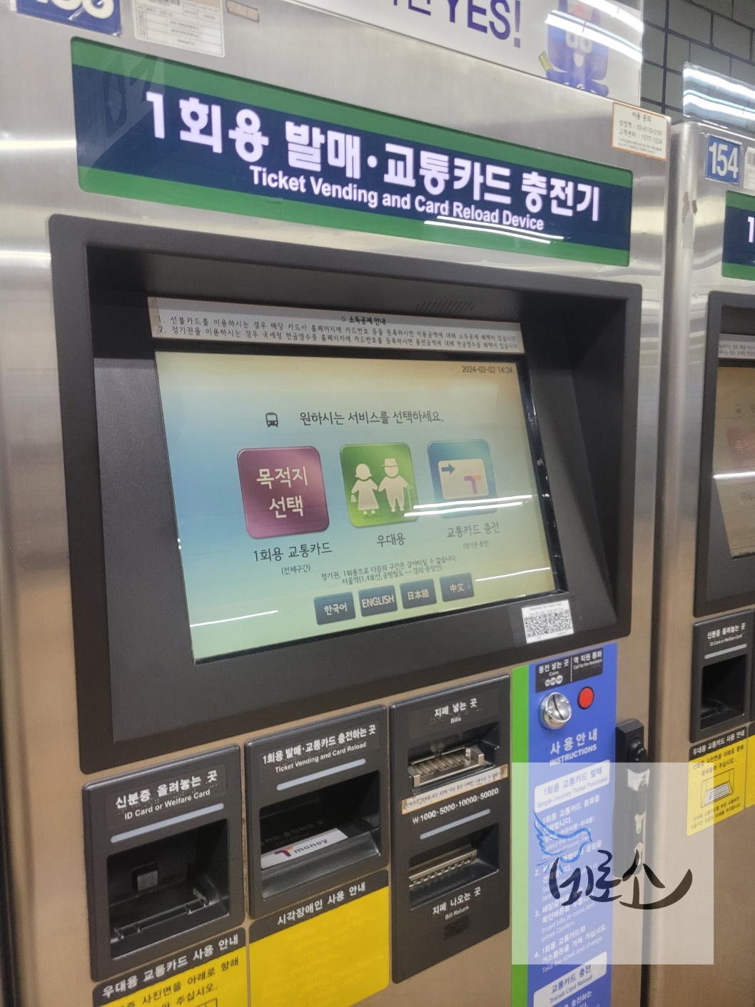 서울 전철 티켓 자판기는 한국어, 영어, 일본어, 중국어 4개 언어로 구매할 수 있다.