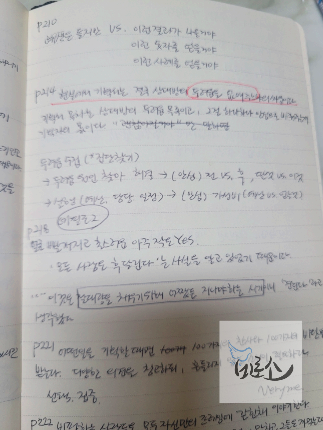 그래서 책을 읽는 중간중간 자신의 소재에 책의 사례를 적용해보려는 시도를 하게 된다. 그래서 강의 필기하듯 나중에 써먹기 좋을만한 것들을 메모하기 시작했다.