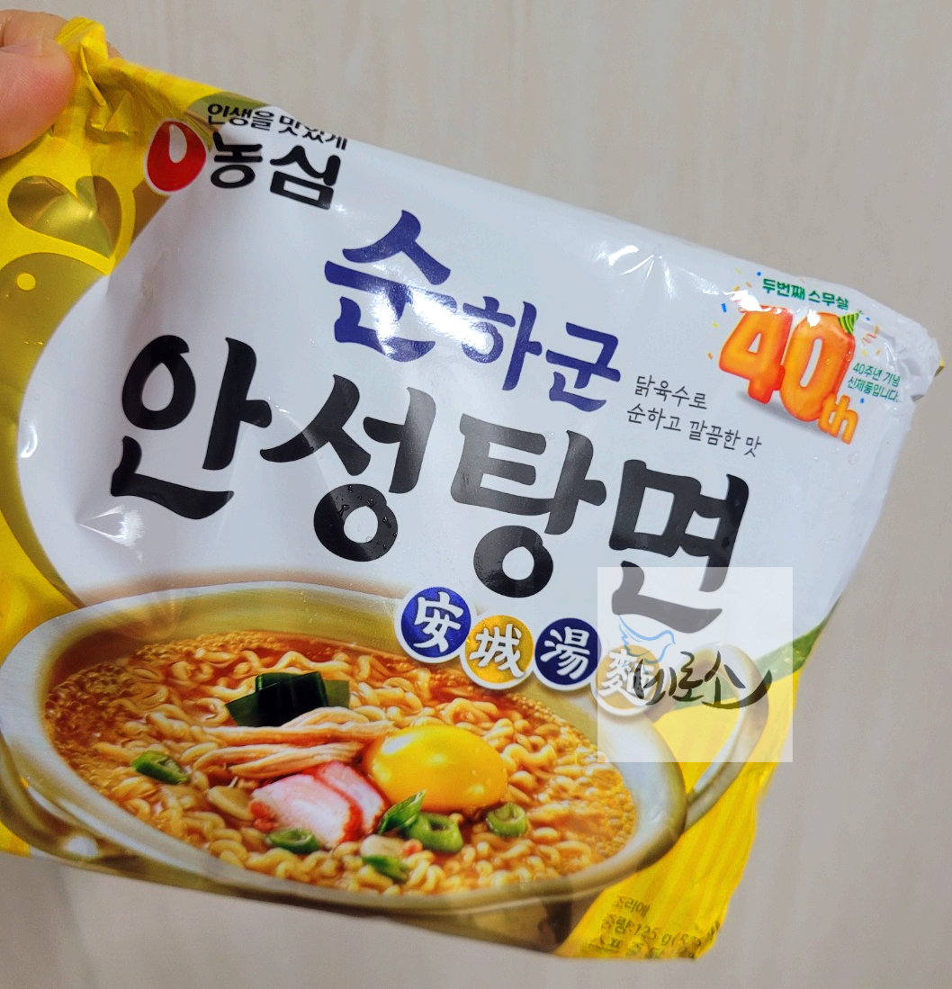 순하군 안성탕면은 두번째 수무살 40주년 기념으로 나온 신제품이다. 닭육수로 순하고 깔끔한 맛을 내세웠는데 많이 매운맛을 내세운 라면 신제품과 차별화를 주기 위한 전략이다. 나처럼 아이에게 끓여줄 수 있는 라면으로도 좋고 삼삼한 맛을 좋아하는 어른들도 있기 때문에 반갑다. 나도 진라면, 너구리 모두 순한맛을 좋아한다.