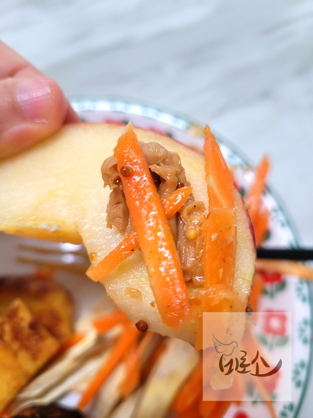 당근라페를 그냥 먹어도 좋고, 사과에 땅콩 잼을 발라 먹을 때 곁들여도 좋다.