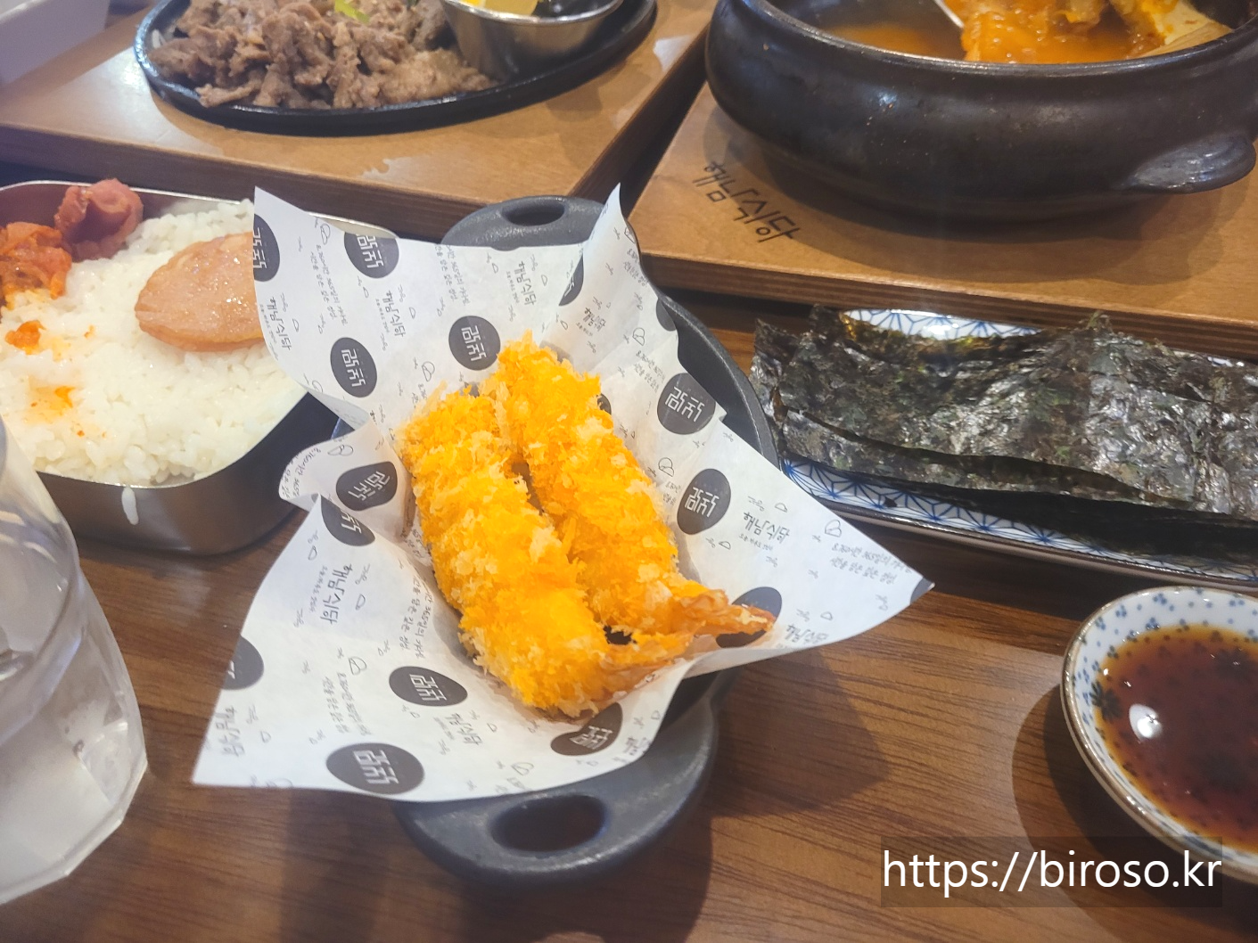 세트에 포함된 새우튀김도 바로 튀겨 나와서 고소하고 바삭하다.