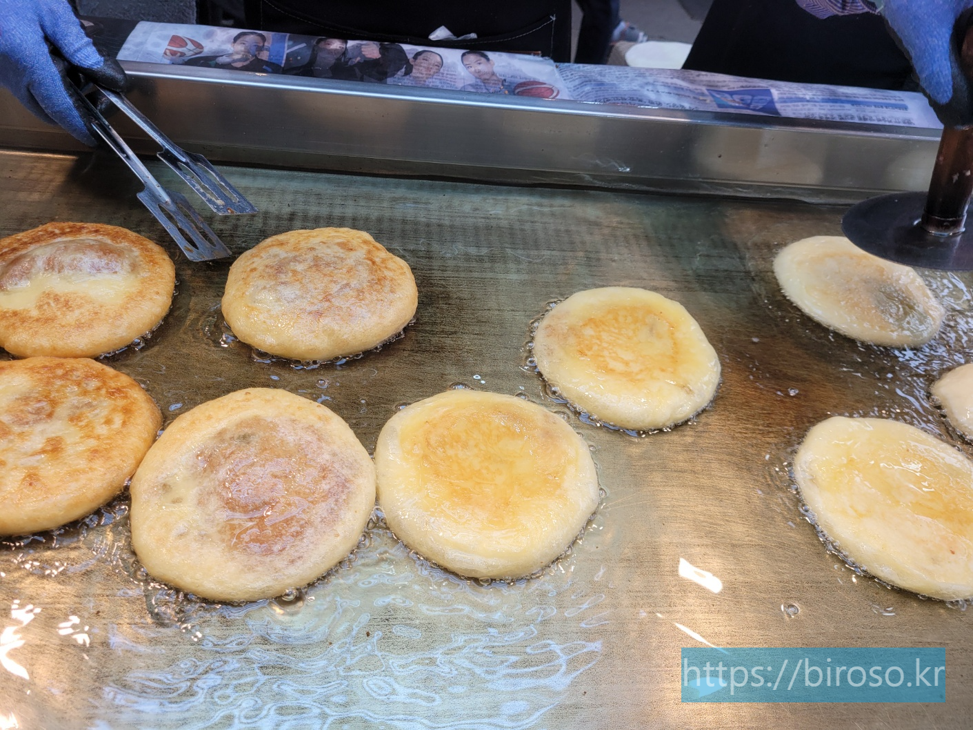 안양 중앙시장 입구를 들어가면 가장 우리를 먼저 반기는 건 호떡집이다. 씨앗 호떡, 매운 잡채 호떡이 각각 2000원 3000원이다. 바로 기름에 튀겨 도너츠처럼 구워주는 호떡은 두께며 크기며 한끼 식사로도 충분할만큼 든든하다. 사진촬영도 반기시면서 잘 나오느냐고 물으셨다.