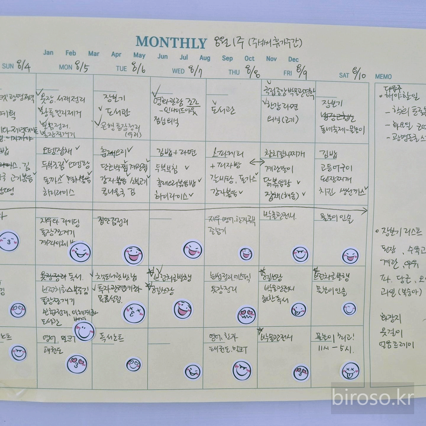 모든 일정, 계획을 지켜낼 수는 없다. 하지만 내가 사랑하는 가족이 오늘 무슨일을 하고 내일 어떤일이 예정되어 있는지 언제든지 알 수 있다는 게 좋았다. 함께 하루하루, 한주를 채워나가는 시간을 이렇게 남겨보는 것도 의미가 있는 일이라는 생각이 들었다.
