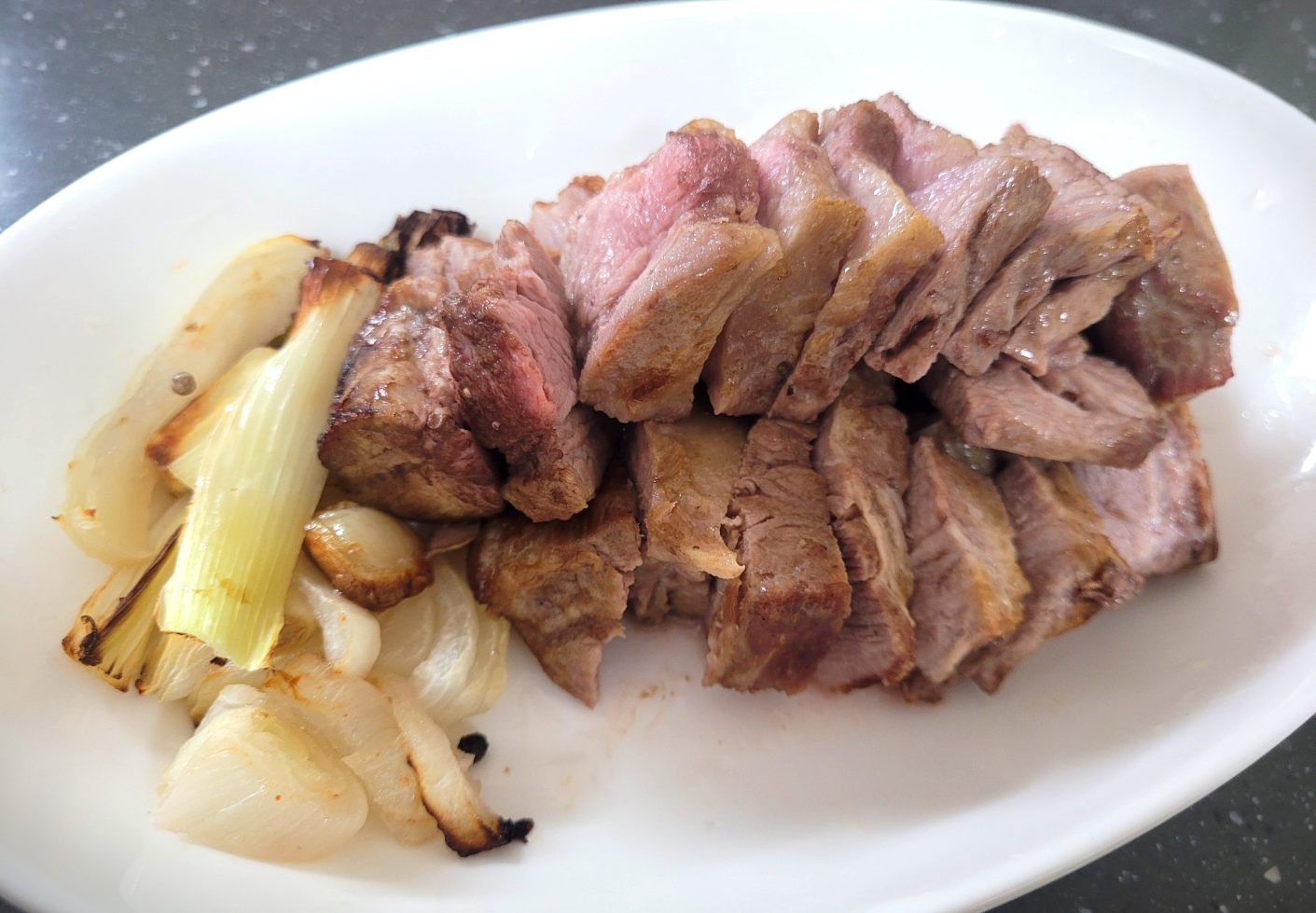 뜨거워서 썰 때 좀 두툼하게 썰었더니 몇 개는 젓가락으로 찢어서 먹는데 잘 찢어지고 나름 지방 부분도 있어서 고소하고 맛이 있었다. 나중에는 파, 양파를 더 많이 넣어서 곁들이기 좋게 해볼 생각이다.