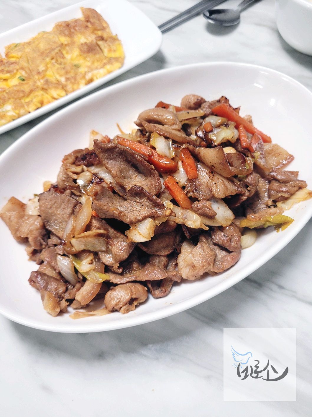 저녁 메뉴로 쌈장을 넣은 돼지 불고기로 정했다. 돼지 불고기 양념은 쌈장과 간장을 베이스로 하였고 달달하고 짭조롬해서 쌀밥과 잘 어울린다. 함께 먹을 반찬으로 계란말이를 하고 어묵국과 광천김을 곁들였다.