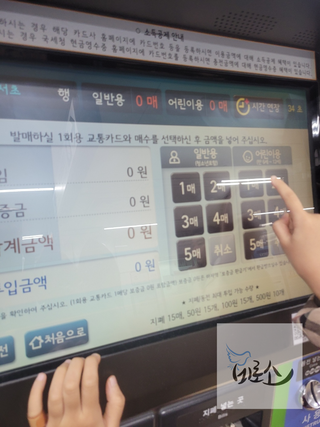 도착할 역의 이름과 구매할 티켓의 종류와 수량을 모두 입력하면 결제해야 할 금액이 나온다. 이 때, 티켓 한 장당 500원의 보증금이 있기 때문에 티켓 가격에 비하여 금액이 더 나오게 되니 당황하지 말아야 한다. 도착한 역에 내려서 티켓을 넣으면 보증금 500원을 돌려 받을 수 있으므로 잊지 말도록 한다.